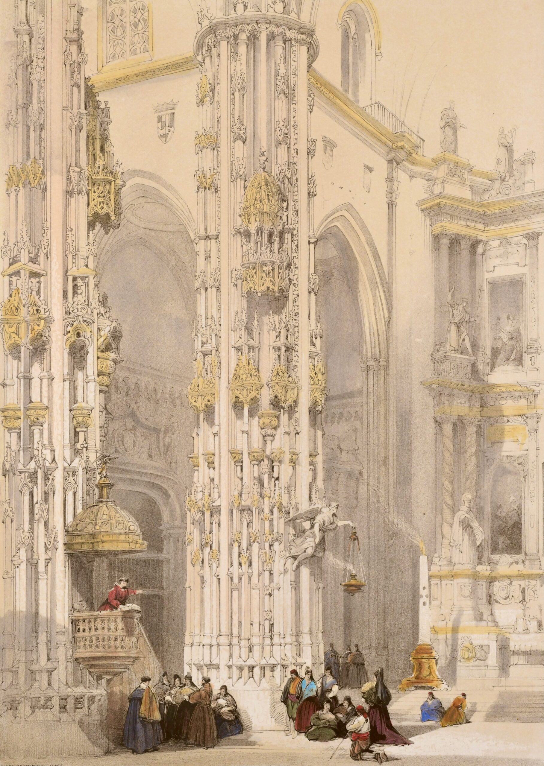 The lithograph is one of twenty-six lithographs included in Lewis’s Sketches of Spain and Spanish character (1836). These prints were worked up from watercolours which Lewis had created in Spain during much the same time as Roberts had been in the country. Roberts and Lewis never met in Spain, but they had slightly different priorities. Roberts was more interested in landscape and architecture, while Lewis, as a genre painter, was above all interested in the Spanish people, their customs and manners, an interest he also shared with Richard Ford.